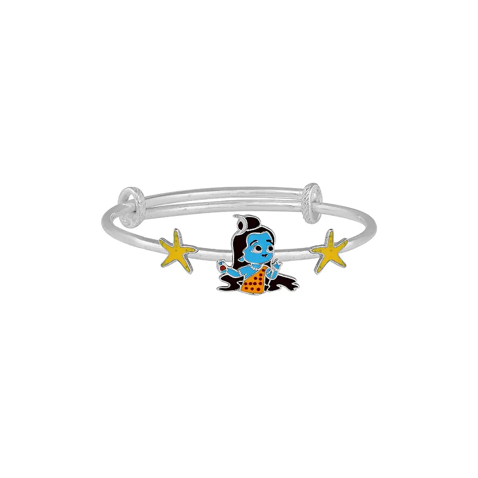 Cute Baby Shiva and stars Silver baby kada (Set of 2)